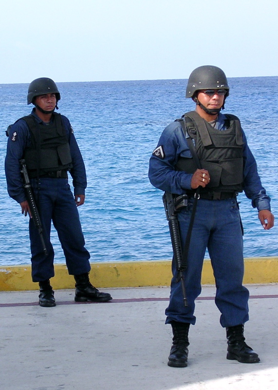 These nice young fellows with their M-16s were keeping watch over the dock in Cozumel.